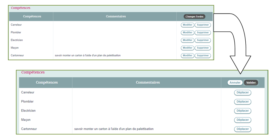 Pour changer l’ordre de l’une des compétences, il suffit de :