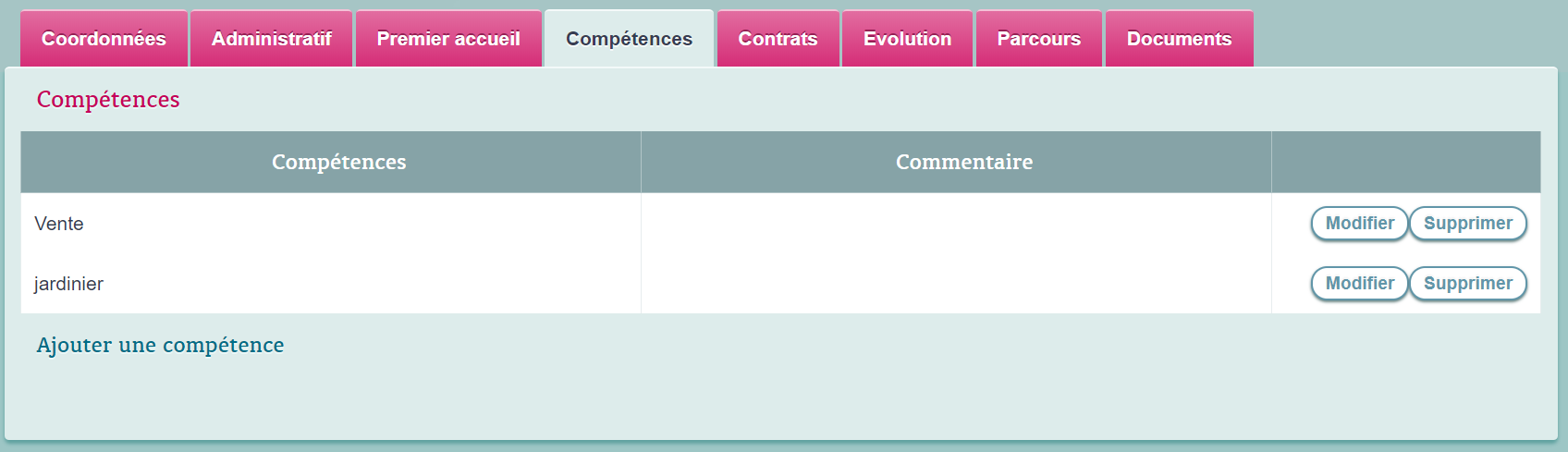 Puis ajouter les compétences de vos salariés en y insérant a votre guise un commentaire afin de décrire plus précisément la compétence. En cas de besoin, vous pourrez modifier le libellé et le commentaire.