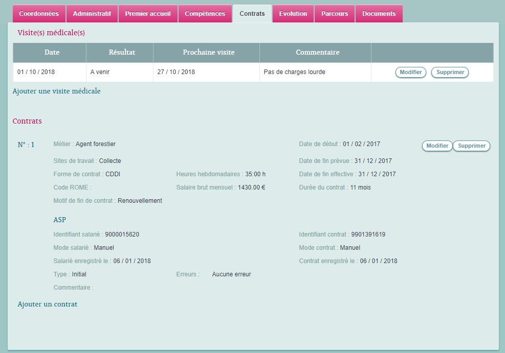 Après avoir cliqué sur l'onglet “Contrat”, Ming vous permet de saisir les informations suivantes :