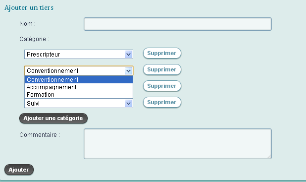 A chaque tiers vous pouvez ajouter une ou plusieurs catégories (A quoi servent les catégories de Tiers ?) ainsi qu'un commentaire. Vous pouvez par exemple mettre l'adresse, le téléphone ou le nom d'un contact dans le commentaire.